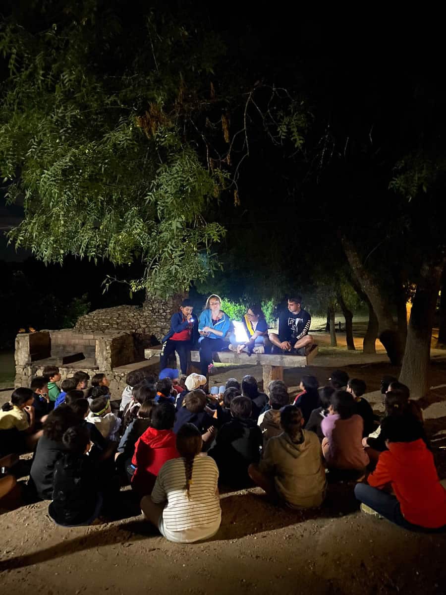 Anoche los alumnos disfrutaron de una velada muy divertida, acabaron agotados y han pasado muy buena noche. Durante el día de hoy han disfrutado de los talleres de equitación, huellas y rastros, huerto y serigrafía de camisetas. También han conocido y cuidado a los animales de la granja: las vacas, los cerdos, las cabras, etc.