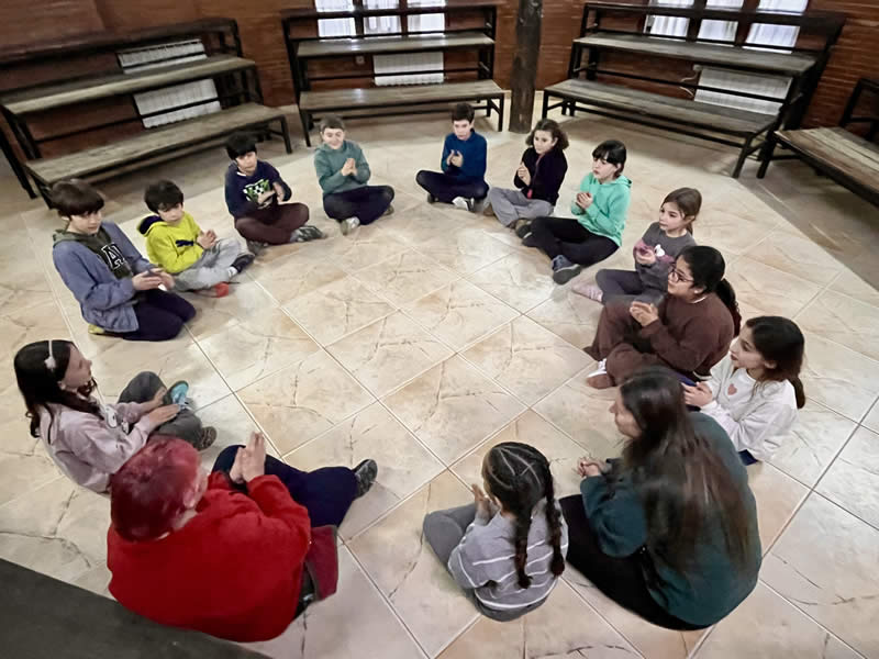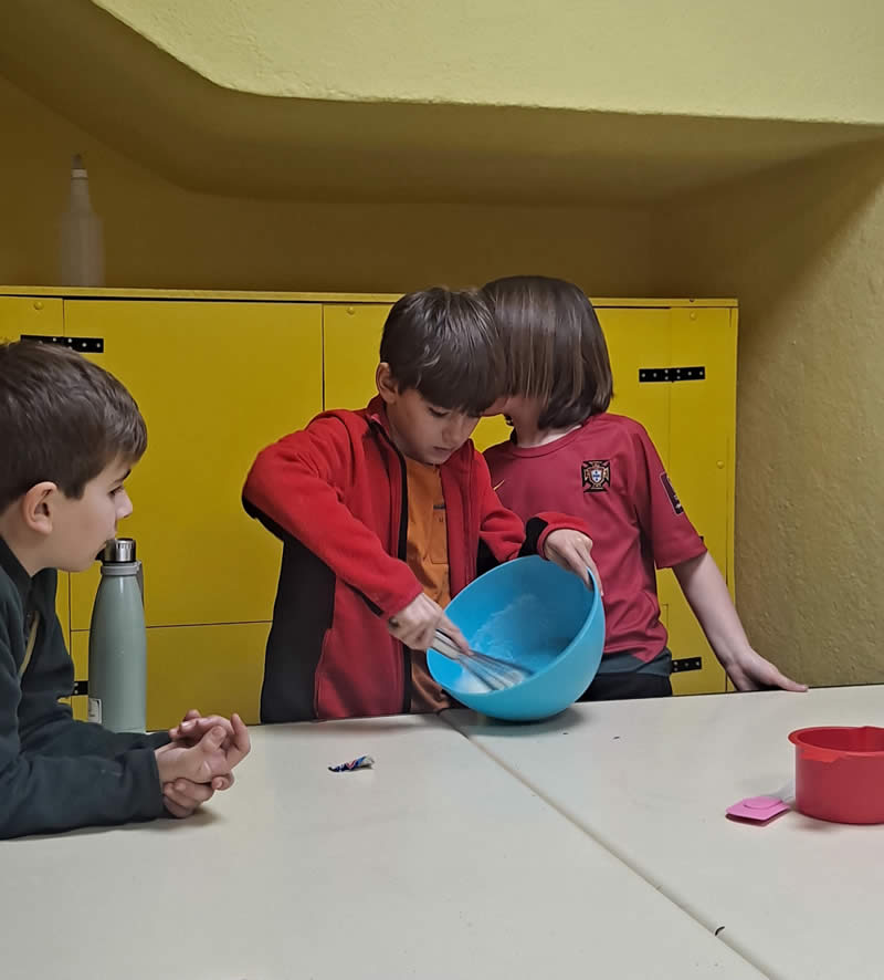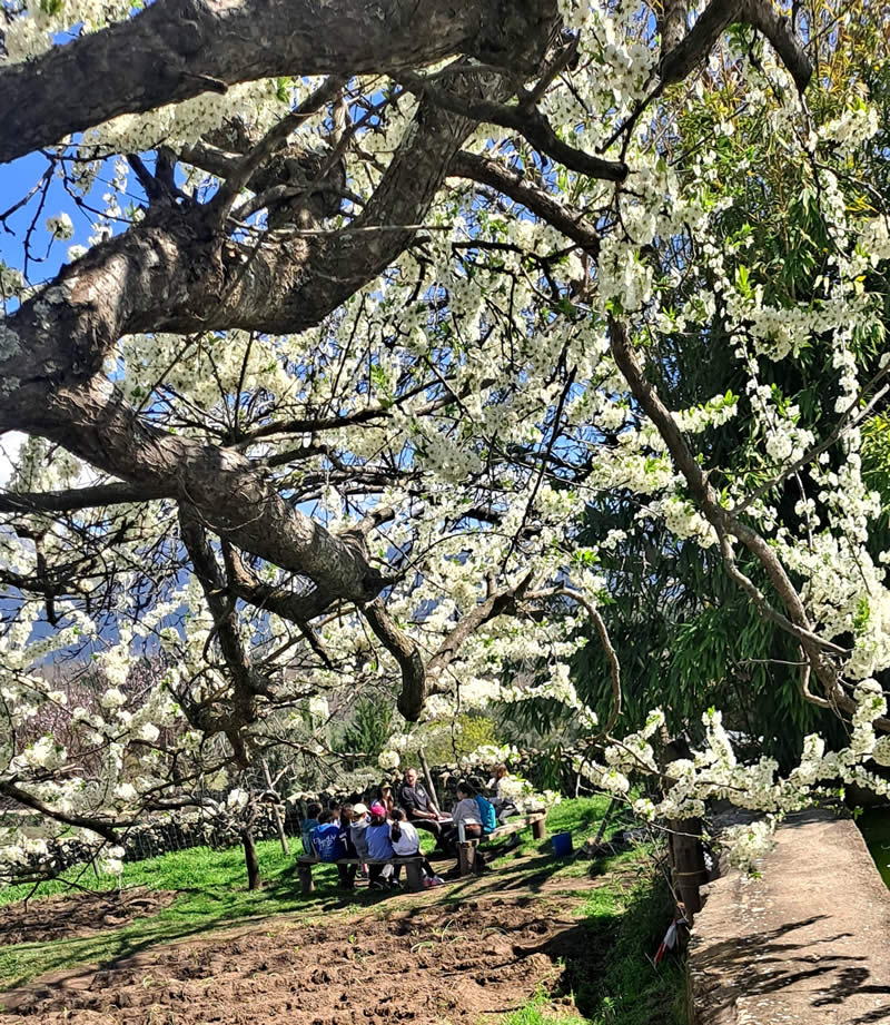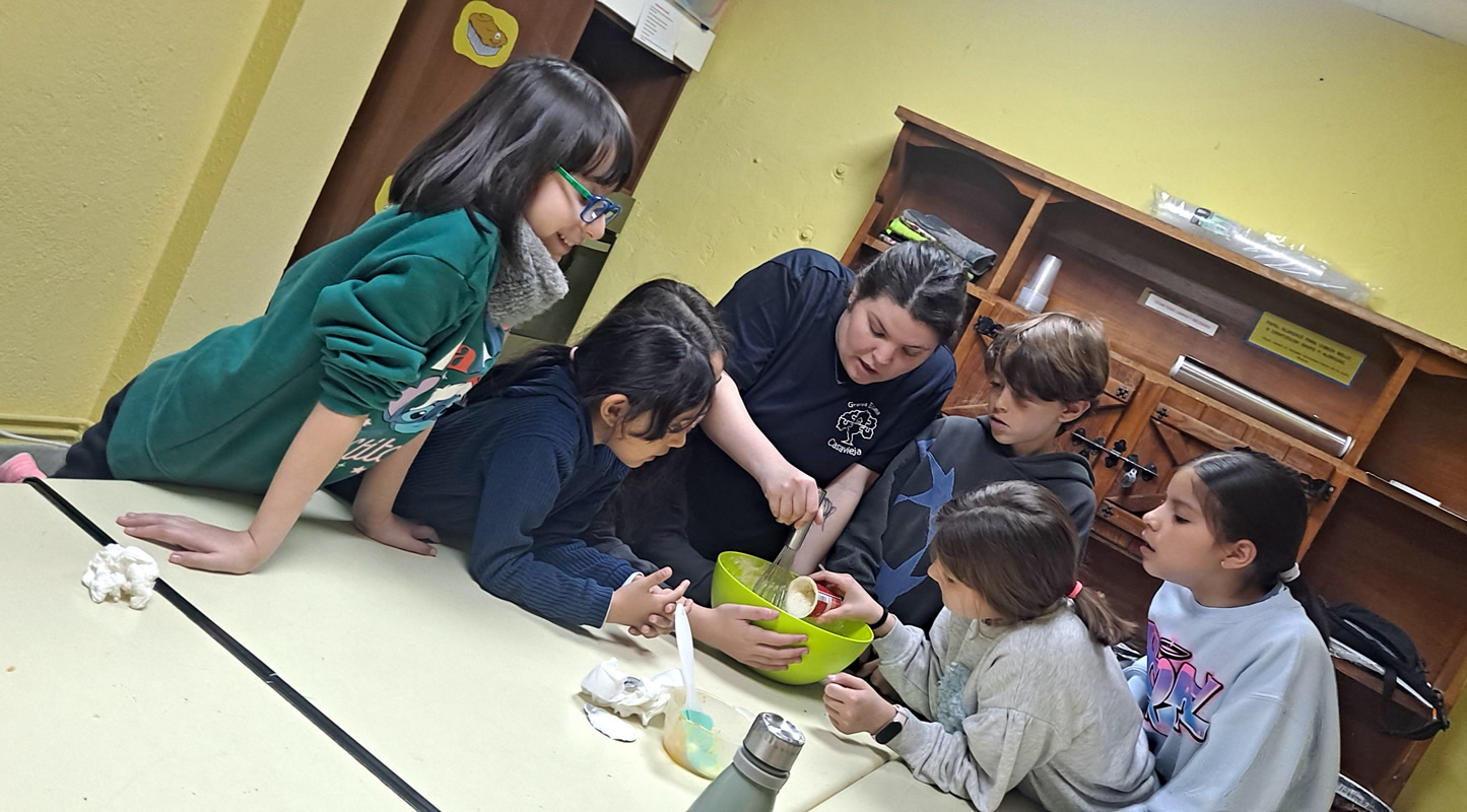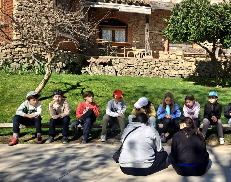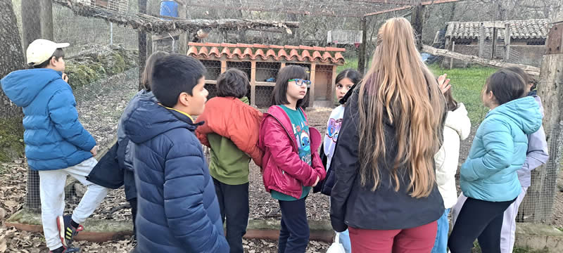 Primer día de estancia en la granja y con un tiempo estupendo. Han disfrutado mucho rotando por los distintos talleres: huerto, animales, rastros y huellas, repostería y textil.