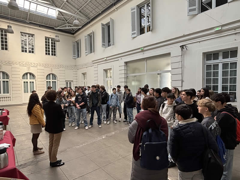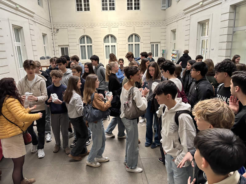 Tras su primera noche con las familias francesas, los alumnos han comenzado el día asistiendo a clase junto a sus correspondientes. A continuación, han recibido una cálida bienvenida por parte de la directora del colegio con un delicioso desayuno iniciando así oficialmente su estancia en Burdeos.