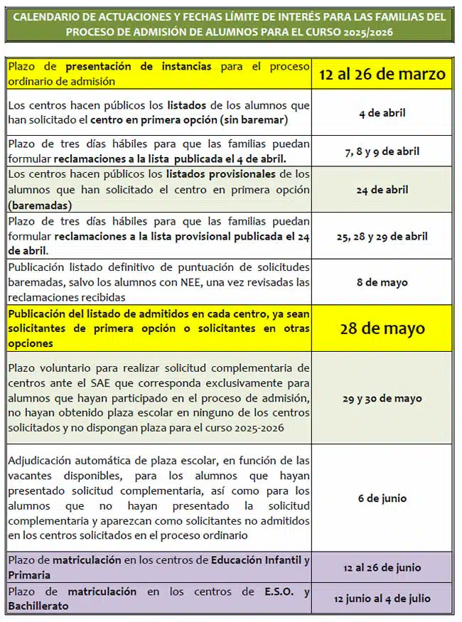 VACANTES PROCESO DE ADMISIÓN DE ALUMNOS PARA EL CURSO 2025/2026 EN CENTROS SOSTENIDOS CON FONDOS PÚBLICOS