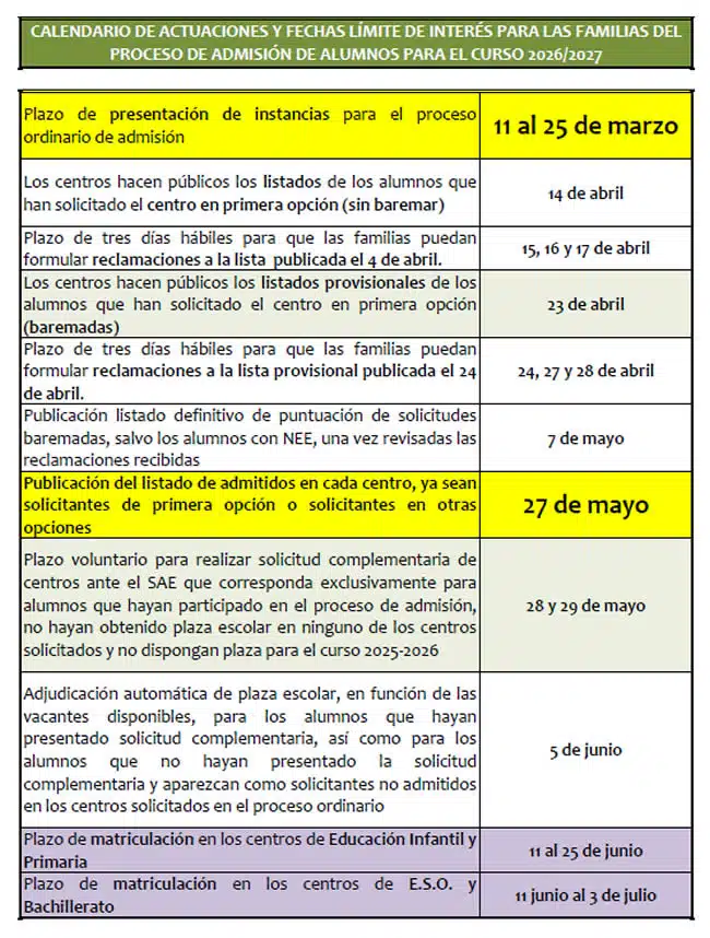 PLAZO DE ADMISIONES: DEL 11 AL 25 DE MARZO