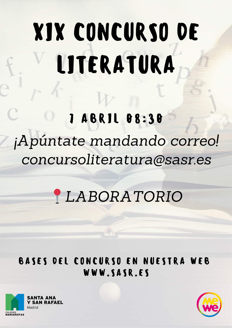 • Los interesados deberán inscribirse hasta el lunes 6 de abril por correo electrónico a concursoliteratura@sasr.es indicando su nombre y el curso en el que están. Una vez inscritos, recibirán un correo de confirmación.
